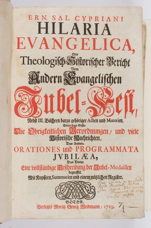 Part of Ern. Sal. Cypriani Hilaria Evangelica, oder theologisch-historischer Bericht vom andern Evangelischen Jubel-Fest ...