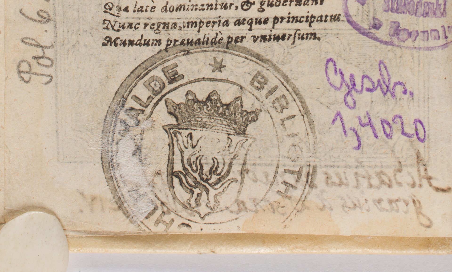 Mores, Leges, Et Ritvs Omnivm Gentivm - pieczątka herbowa "Bibliothek Reichertswalde" i sygnatura: Gesch. 1,4020.