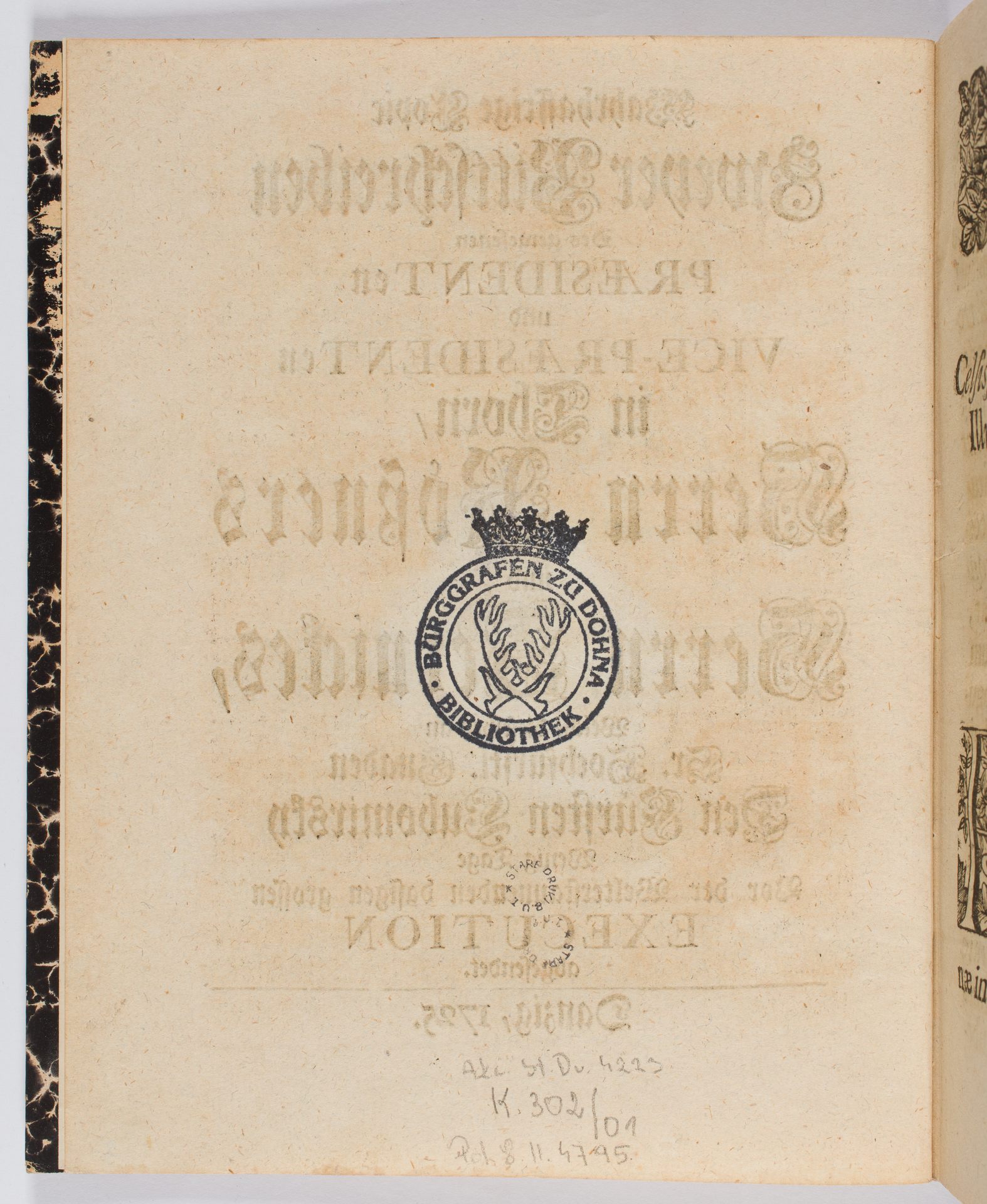 Wahrhafftige Copie Zweyer Bittschreiben Des gewesenen Præsidenten und Vice-Præsidenten in Thorn... - strona z pieczątką herbową