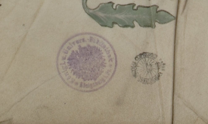 Catena aurea super Lucam - pieczęć okrągła: Königl. u. Univers. Bibliothek Königsberg i. Pr. (k. 1v)