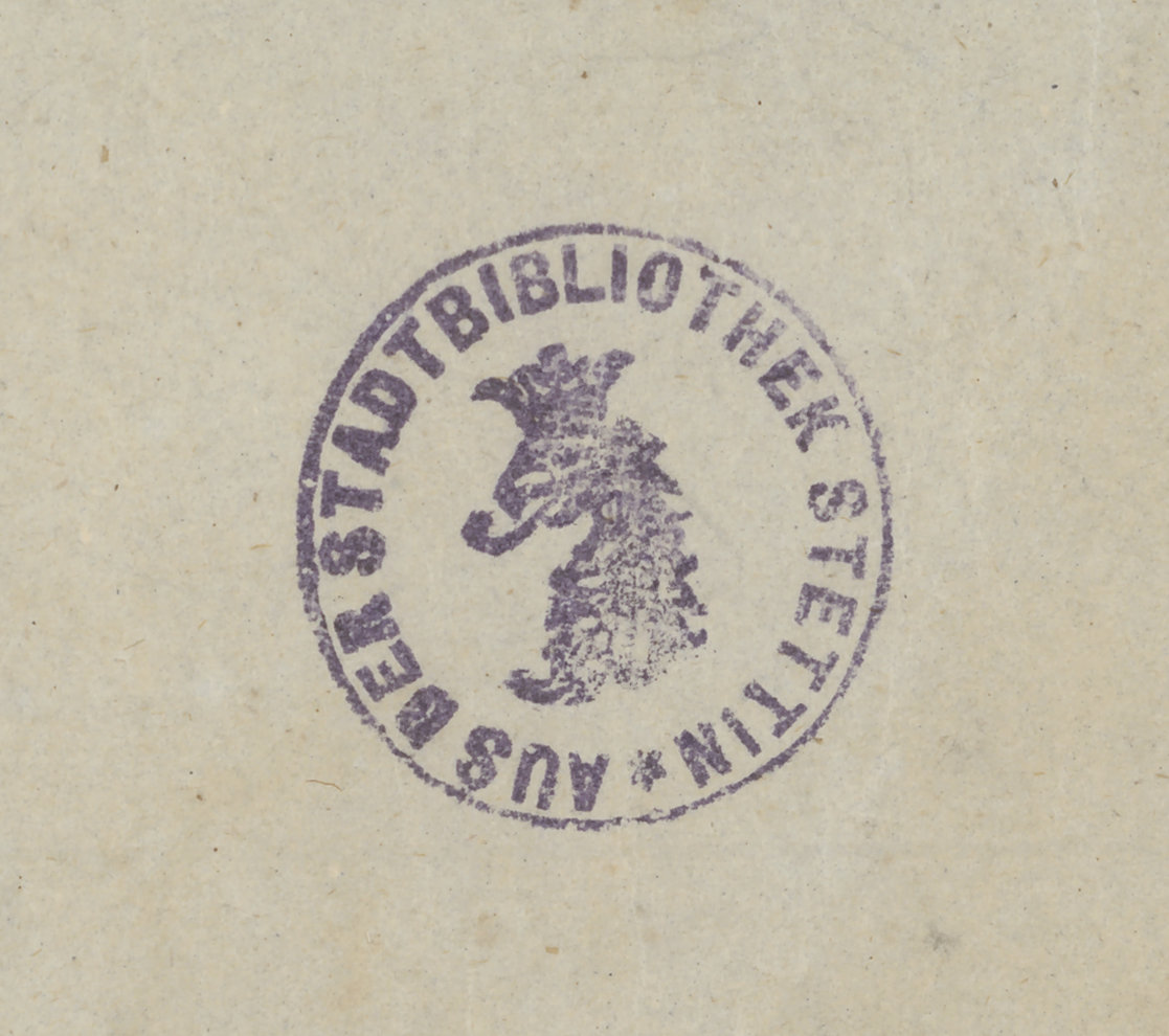[Brak tytułu] - okrągła pieczątka: Aus der Stadtbiblothek Stettin