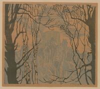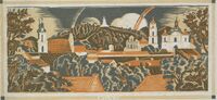 Wilno, widok z Pohulanki drzeworyt barwny -