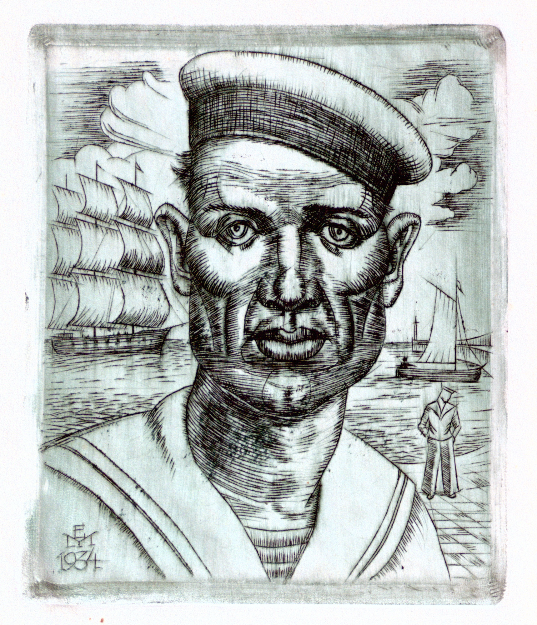 Marynarz, Medeksza Edmund, akwaforta, 13,4x11,2, 1934 r.
