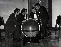Spektakl „Debiut literacki Mikołaja Kopernika”, 27 czerwca 1971 w Sali Królewskiej Ratusza Staromiejskiego w Toruniu. W roku 1509 Mikołaj Kopernik, wydał w Krakowie w oficynie Jana Hallera swój debiut literacki w postaci przekładu z języka greckiego na łaciński Listów obyczajowych, sielskich i miłosnych Teofilakta Symokatty. W 1953 ukazało się wznowione wydanie Listów z polskim przekładem Jana Parandowskiego. Fotografia przedstawia aktorów Teatru im. Wilama Horzycy w Toruniu: Jerzego Kozłowskiego, Andrzeja Salawy, Tomasza Witta (opracowanie spektaklu) -