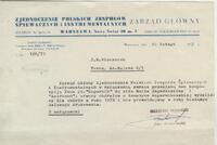 Korespondencja dotycząca kompozycji Jana Wieczorka ku czci 500. rocznicy urodzin Mikołaja Kopernika. Odpowiedź Zarządu Głównego Zjednoczenia Polskich Zespołów Śpiewaczych i Instrumentalnych w sprawie dodruków utworów chóralnych Jana Wieczorka pt. “Kopernik” i “Astronom”. Kompozycje te pochodziły z “Tryptyku Kopernikańskiego” na cztery głosy dziecięce do słów Emila Zegadłowicza -