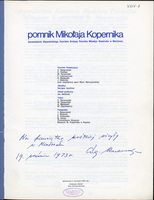 Program Kopernik monument dedication 18th street and Benjamin Franklin Parkway, Philadelphia, Pensylvania Zaproszenie z programem obchodów organizowanych w związku z odsłonięciem pomnika Mikołaja Kopernika w Filadelfii