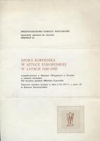 Zaproszenie na otwarcie ekspozycji pt. “Epoka Kopernika w sztuce europejskiej w latach 1450-1550”, 6 września 1973 r., Ratusz Staromiejski w Toruniu. Wystawa zorganizowana w Muzeum Okręgowym w Toruniu w ramach obchodów 500. rocznicy urodzin Mikołaja Kopernika. -