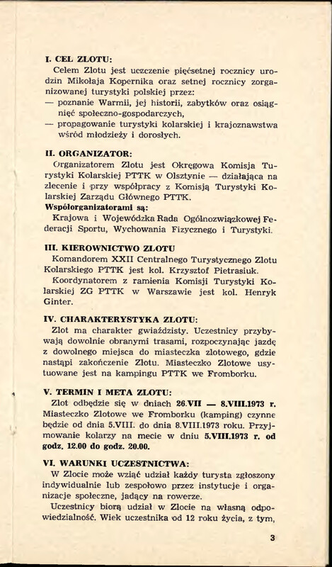 - Regulamin XXII Centralnego Zlotu Kolarskiego PTTK Frombork : 26 VII-8 VIII 1973