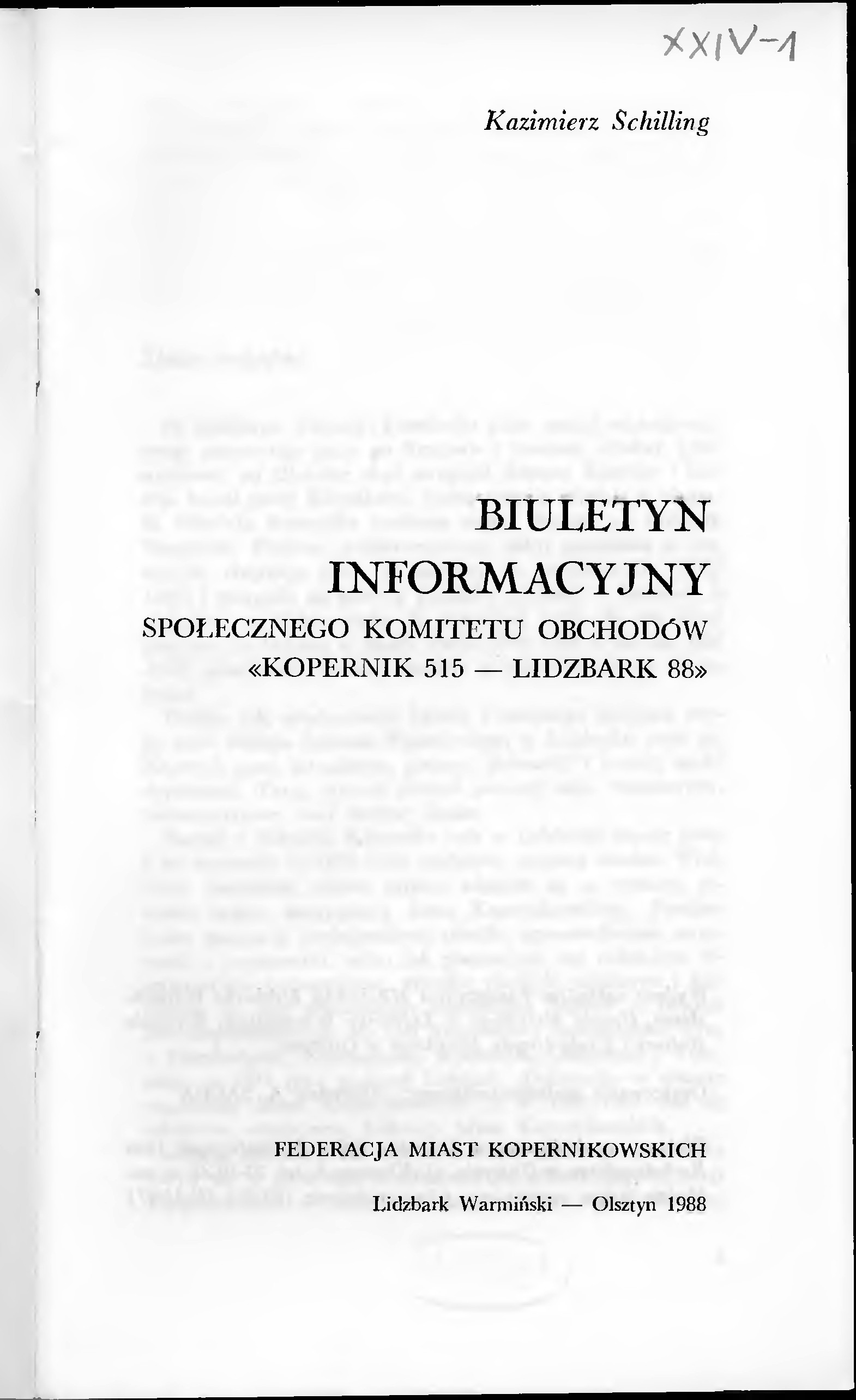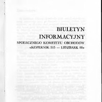 Biuletyn informacyjny Społecznego Komitetu Obchodów “Kopernik 515 – Lidzbark 88”