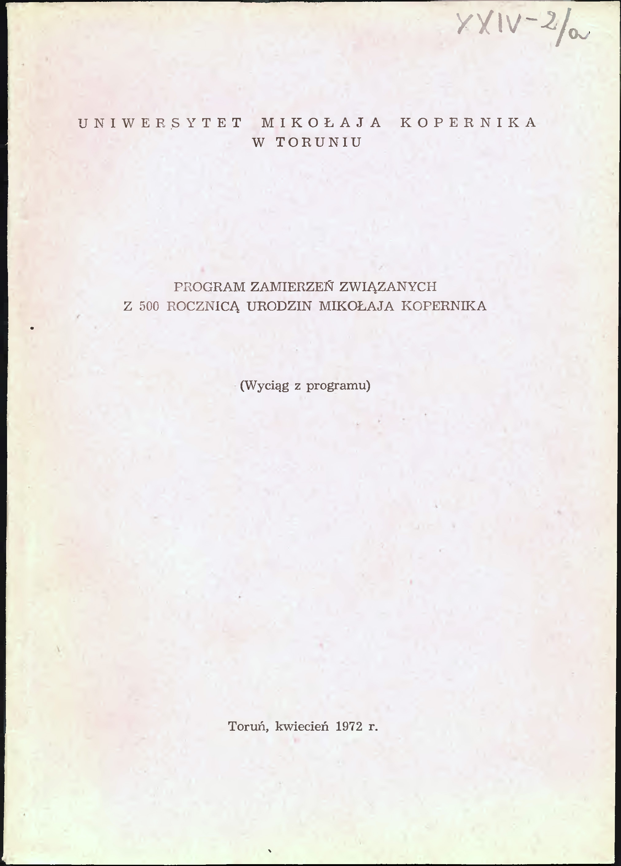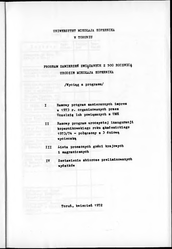 Program zamierzeń związanych z 500. rocznicą urodzin Mikołaja Kopernika : (wyciąg z programu)