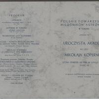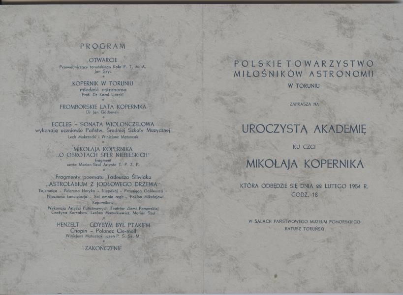 Akademia zorganizowana została przez Polskie Towarzystwo Miłośników Astronomii w Toruniu w salach Państwowego Muzeum Pomorskiego w Ratuszu Staromiejskim. Zaproszenie zawiera program uroczystości