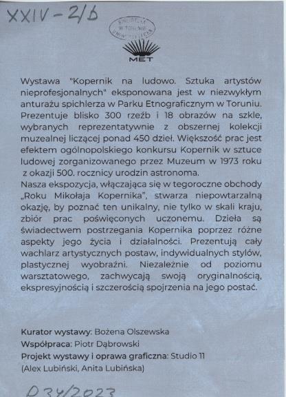 Wystawa "Kopernik na ludowo. Sztuka artystów nieprofesjonalnych", 29.06.-30.12.2023 r., Muzeum Etnograficzne w Toruniu.