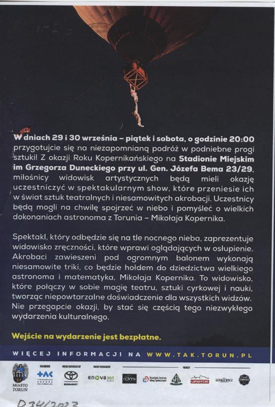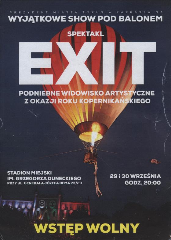 Zaproszenie na wyjątkowe show pod balonem spektakl “Exit”, podniebne widowisko artystyczne z okazji Roku Kopernikańskiego 2023.