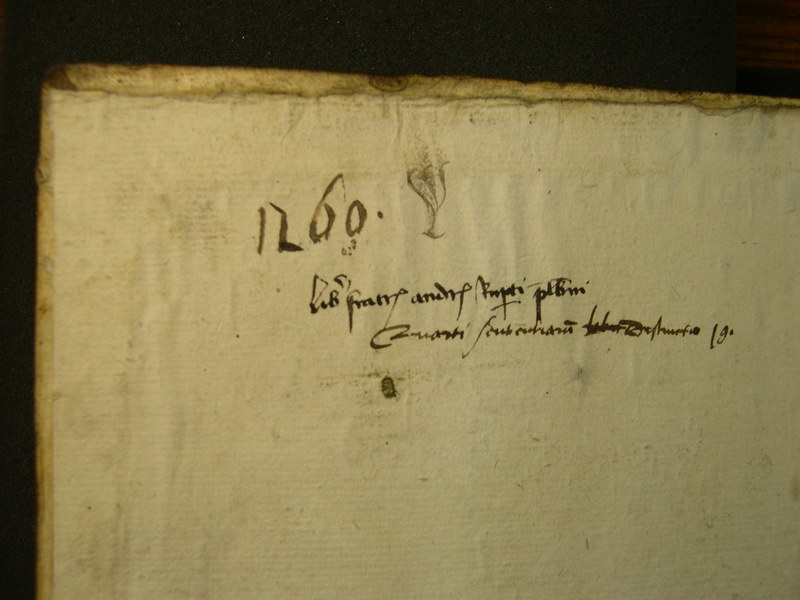 Oprawa: deski dębowe, skóra jasna, 2 zapięcia uszkowe na skórzanych paskach, z bolcami na górnej okładzinie. Dekoracja okładzin o kompozycji ramowej ze zwierciadłem, w którym wzór rombowy, ślepo wyciskana strychulcem i tłokami z motywem m.in. smoka i rozetki. Na wyklejce górne okładziny nota własnościowa: "liber fratris Andree Ruperti plebani" oraz sygn. 1260 (Państwowa i Uniwersytecka Biblioteka w Królewcu)