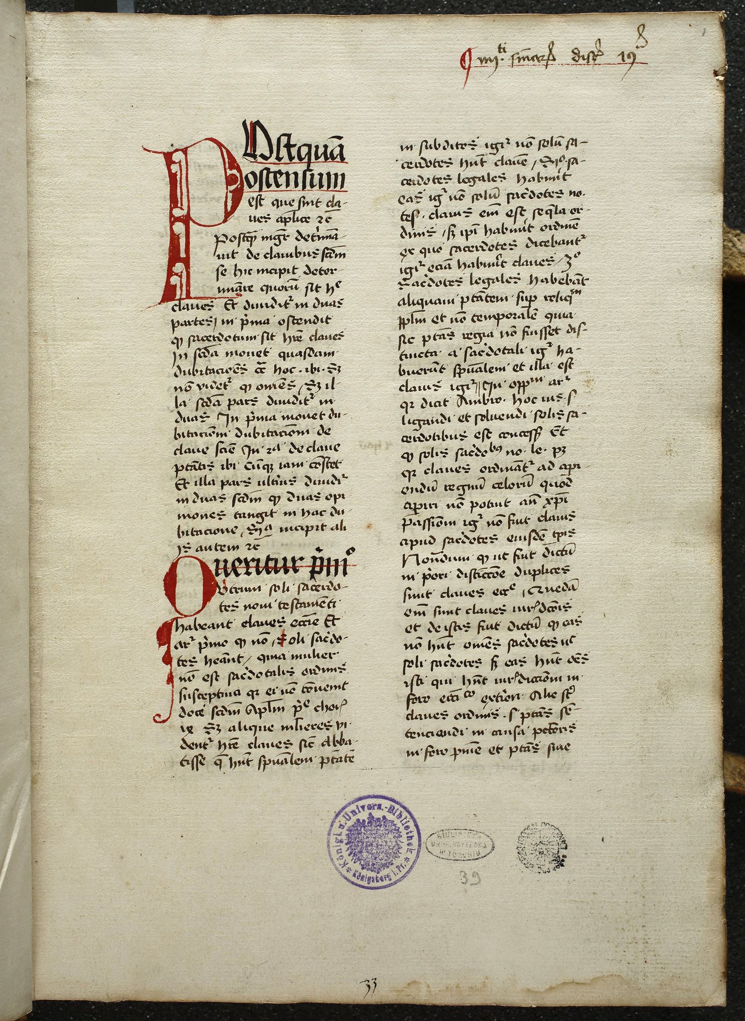 1. k. 1r-279r: Nicolaus de Dinkelsbühl, Questiones quarti Sententiarum (Lectura Mellicensis)