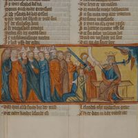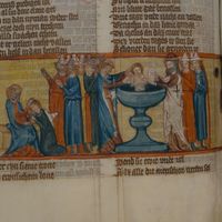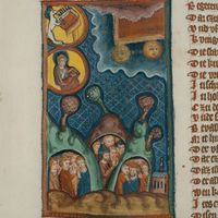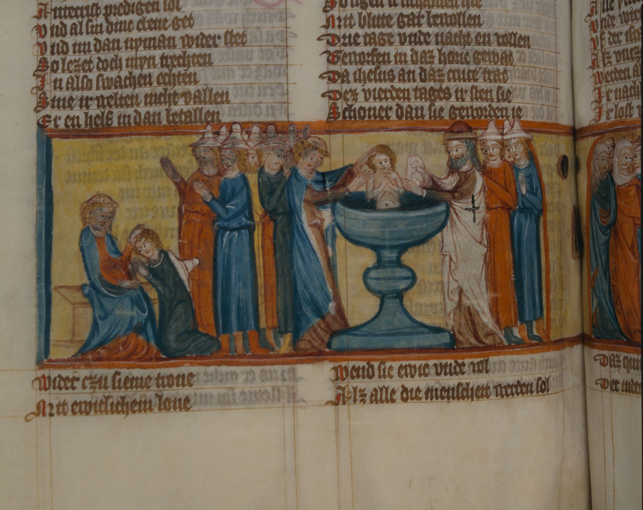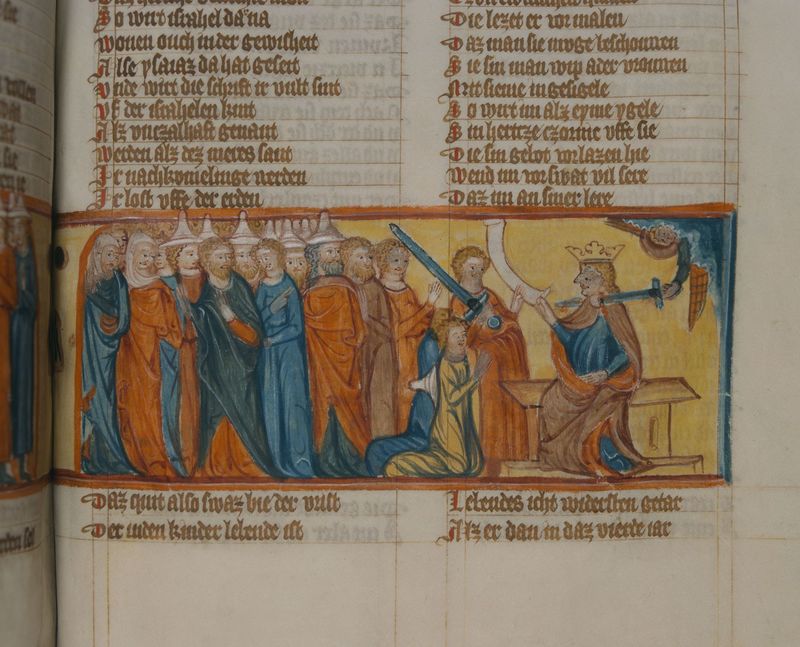 Biblioteka UMK, Rps 44/III, k. 173v, miniatura "Chrzest niewiernych i śmierć antychrysta"