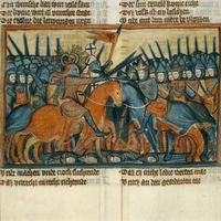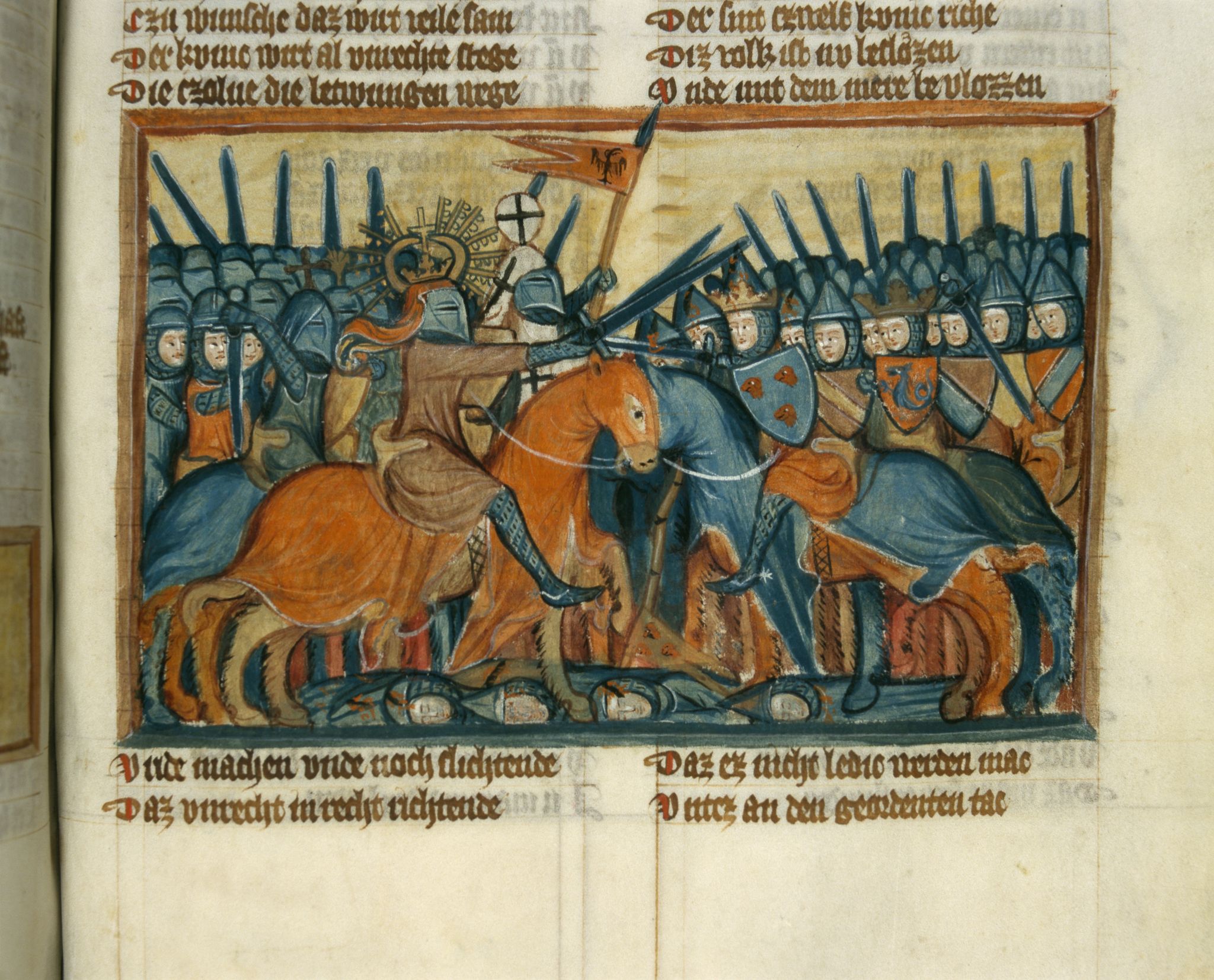 Biblioteka UMK, Rps 44/III, k. 168r, miniatura "Walka z wojskami Goga i Magoga"