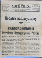 Gazeta Kaliska : Dodatek nadzwyczajny Afisz informujący o okolicznościach zabójstwa Prezydenta Rzeczypospolitej Gabriela Narutowicza w dniu 16 grudnia 1922 r.
