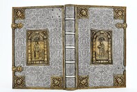 Srebrna oprawa z kolekcji Albrechta Hohenzollerna i jego żony Anny Marii - Ob.6.III.714-715 Pośrodku górnej okładziny okrągła plakieta ze sceną Grzechu Pierworodnego, obok sceny Stworzenia Ewy i Wygnania z raju. W centrum dolnej okładziny plakieta ze sceną Ukrzyżowania. W obrębie plakiety po lewej stronie sylweta kościoła, poniżej galopujący jeździec.