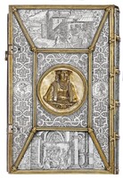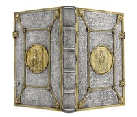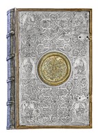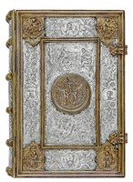 Srebrna oprawa z kolekcji Albrechta Hohenzollerna i jego żony Anny Marii - Ob.6.II.4496 Górna i dolna okładzina posiadają identyczne zdobienia. W centrum obu okładzin medalion ujęty w plastyczne trybowane obramienie z głowami lwów, maskami, owocami oraz stylizowanymi liśćmi, środek medalionu ozdobiony ornamentem maureskowym.