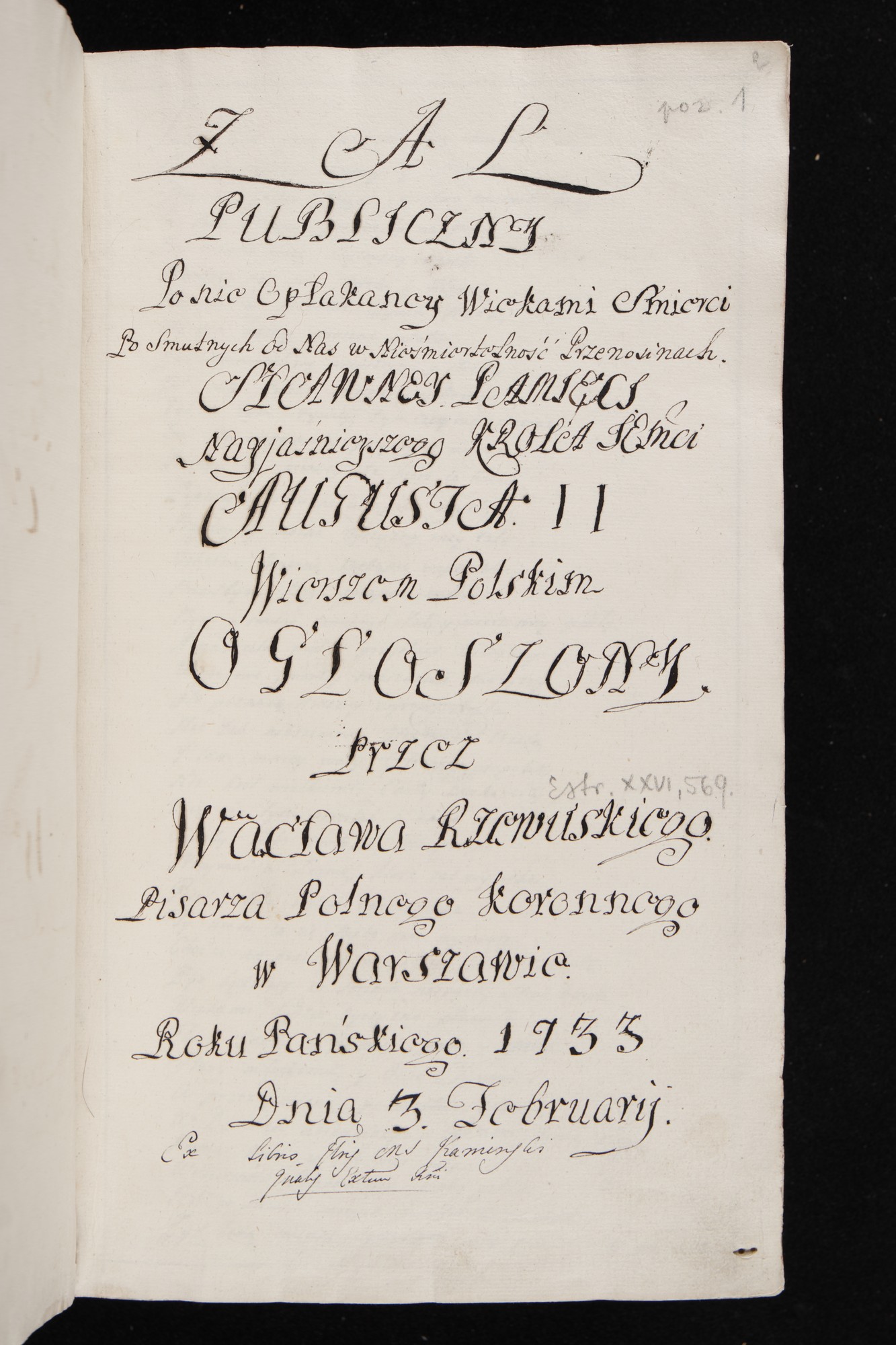 Kopiariusz rękopisów i druków z lat 1733-1735 dotyczących sporów politycznych w Rzeczpospolitej wywołanych śmiercią Augusta II oraz jednoczesną elekcją Stanisława Leszczyńskiego i Augusta III