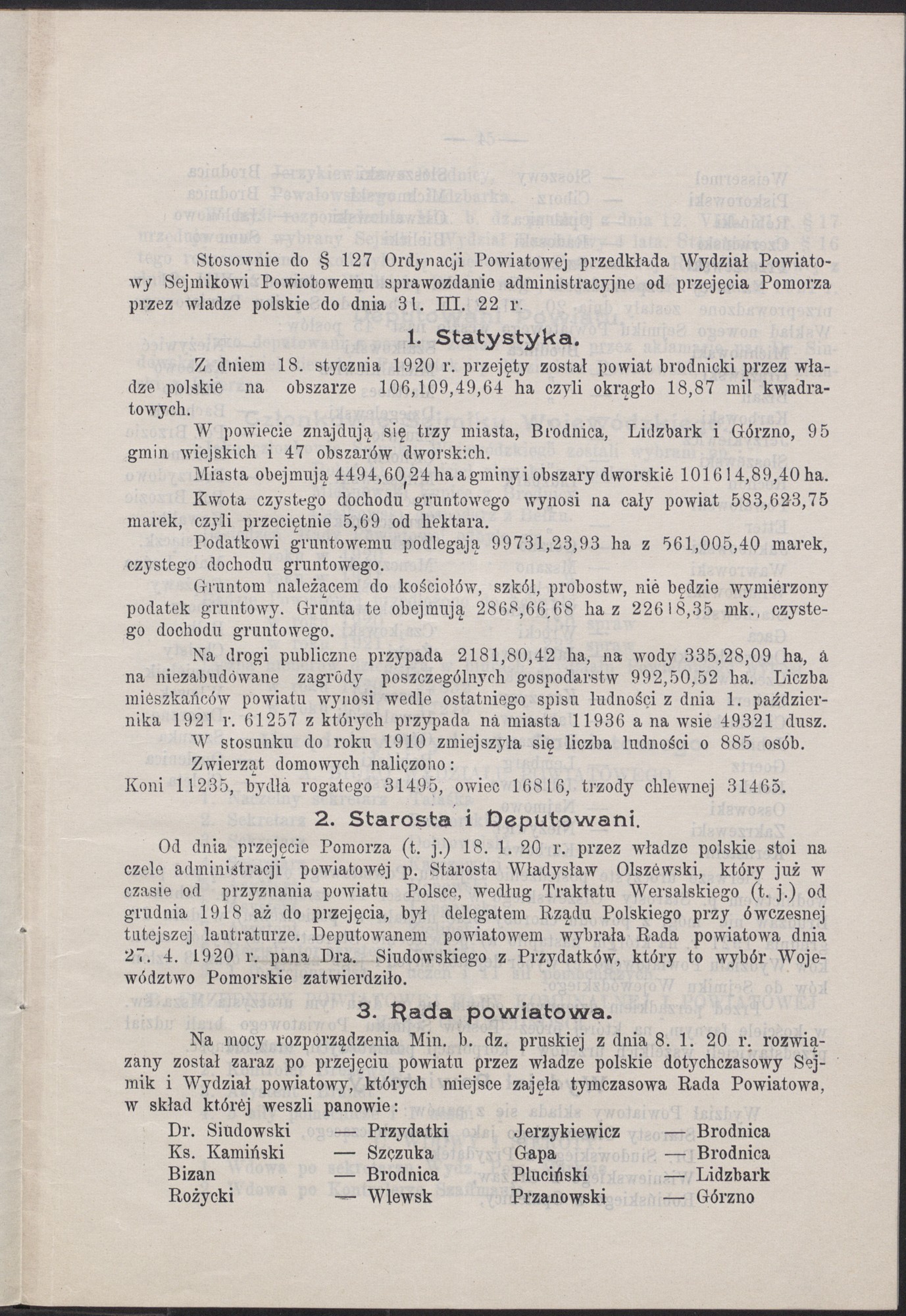 - Sprawozdanie Administracyjne Starostwa Brodnickiego za rok 1920 i za rok 1921.
