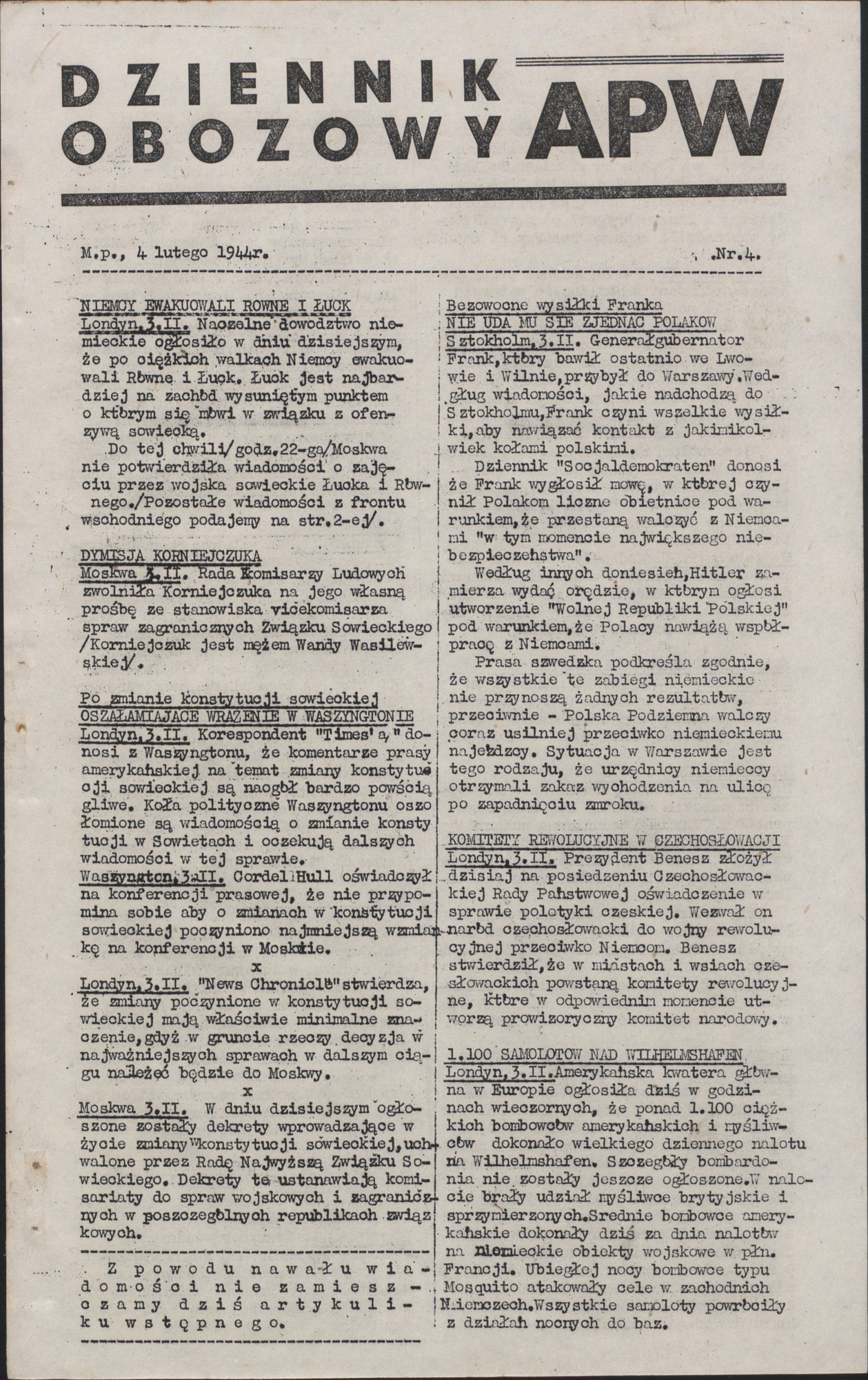 Dziennik Obozowy APW 1944.02.04 nr 4