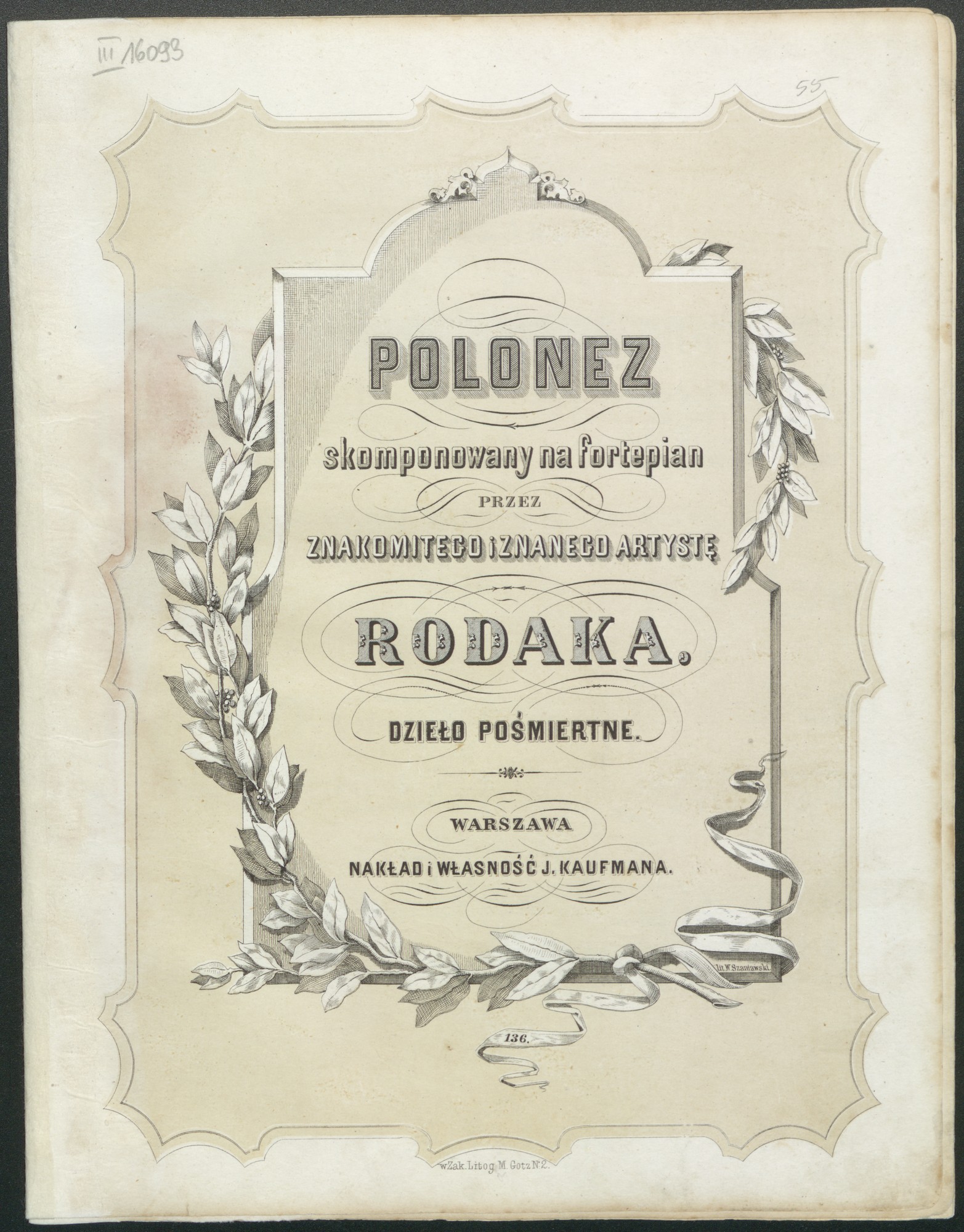 nakł. i własność J. Kaufmana ; Lit. W. Szaniawski ; Zakł. Litog. M. Gotz No. 2