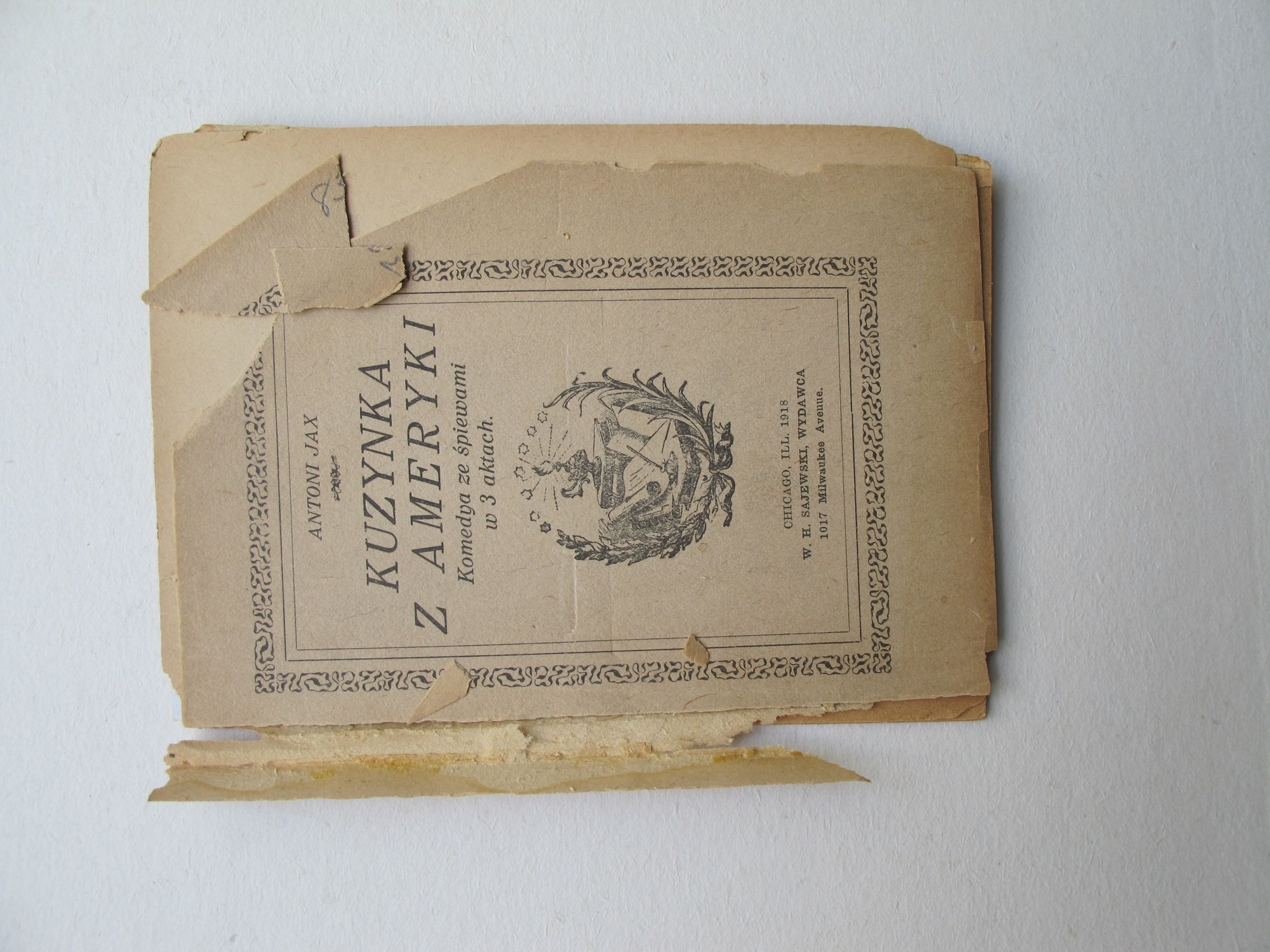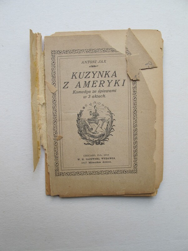 - Broszura ze zbioru Archiwum Emigracji ze zniszczeniami mechanicznymi powstałymi na skutek silnego zakwaszenia papieru i użycia zszywek metalowych.