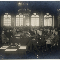 - Posiedzenie plenarne komisji polsko – radzieckiej w sprawie traktatu pokojowego. Przy stole na lewo komisja radziecka, na prawo – komisja polska.