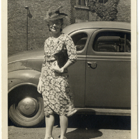 - Wanda Poznańska przed domem Magdaleny Poznańskiej-Shultz
