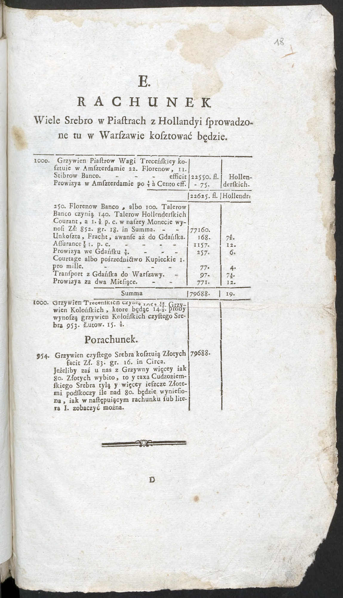 - Rachunek Wiele Srebro w Piastrach z Hollandyi sprowadzone tu w Warszawie kosztować będzie
