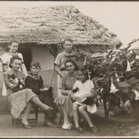 - Zdjęcie przedstawia m. in. Olgę Trybuchowską (1906-1986) na tle domków, w których w Tengeru mieszkano. Kolekcja Muzeum Oświaty w Bydgoszczy