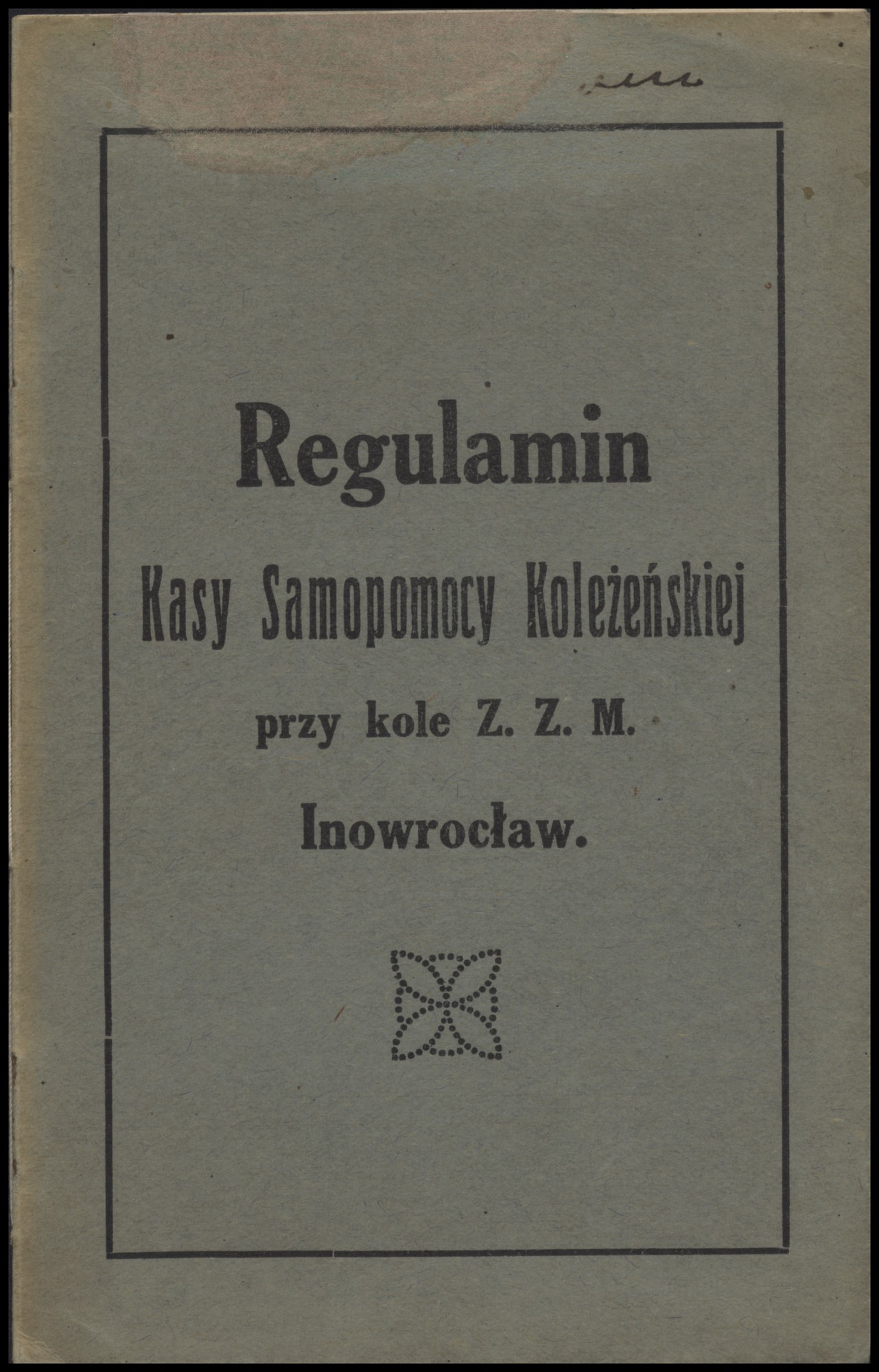 Regulamin Kasy Samopomocy Koleżeńskiej przy Kole Z. Z. M., Inowrocław ; Regulamin Kasy Samopomocy Koleżeńskiej przy Kole Związku Zawodowego Maszynistów, Inowrocław.